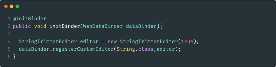 @InitBinder注解用于标注初始化WebDataBinider的方法,该方法用于对Http请求传递的表单数据进行处理,如时间格式化、字符串处理等。下面是使用此注解的示例: