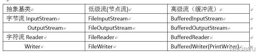 - 按功能不同分为:节点流、处理流