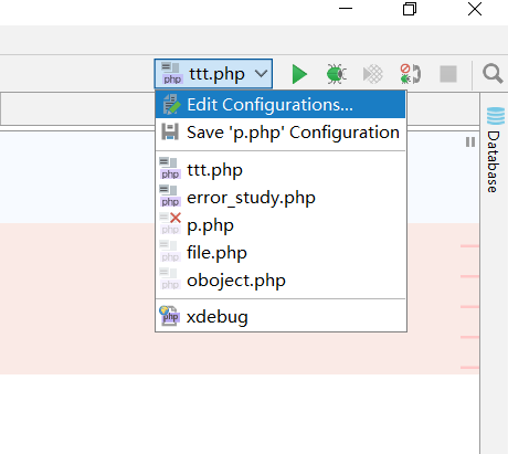 7、Apply后打开一个php文件,点击右上角的EditConfigurations