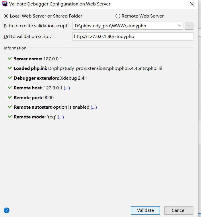 [XDebug] xdebug.profiler_output_dir="D:\phpstudy_pro\Extensions\php\php5.4.45nts\xdebug" xdebug.trace_output_dir="D:\phpstudy_pro\Extensions\php\php5.4.45nts\xdebug" zend_extension="D:\phpstudy_pro\Extensions\php\php5.4.45nts\ext\php_xdebug.dll" xdebug.remote_enable = 1 xdebug.remote_handler = dbgp xdebug.remote_host = 127.0.0.1 xdebug.remote_mode = req xdebug.remote_port = 9000 xdebug.idekey="phpstorm" xdebug.remote_autostart = 1