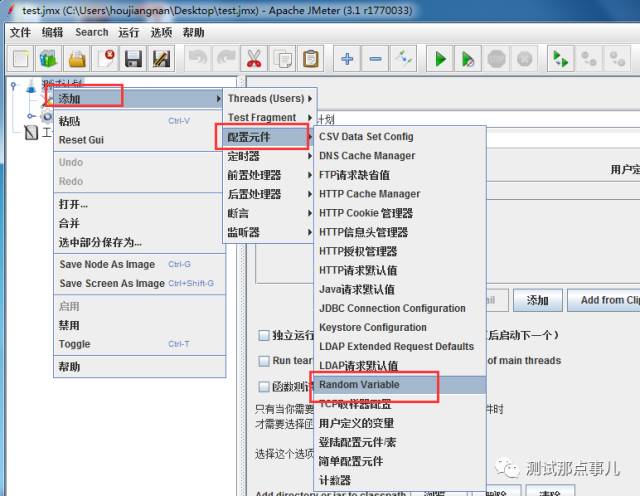 在测试计划下,我们右键“添加”——配置原件——Random Variable