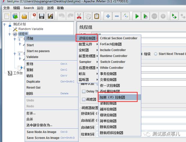 右键线程组添加“逻辑控制器”——如果(if)控制器