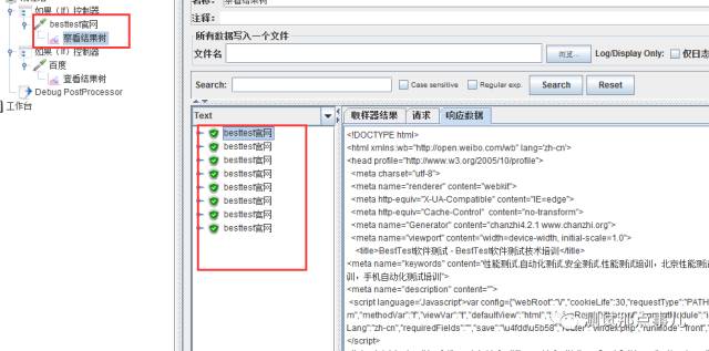 运行jmeter验证,取值是否按照比例请求,我们设置一个线程数,让其循环10次,结果如下,访问besttest官网8次,果然其中访问百度2次