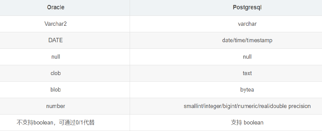 oracle 与pg数据库的差别