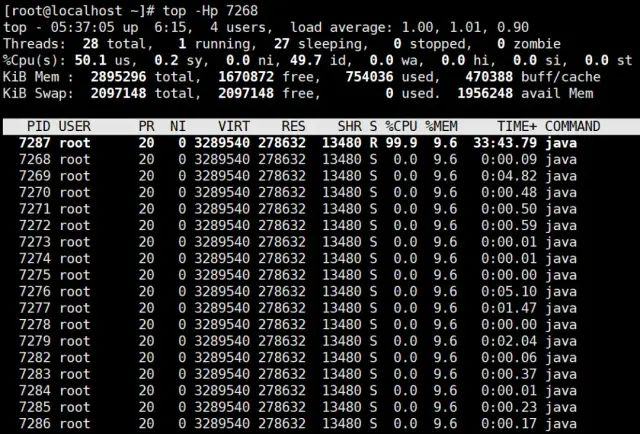 这样就可以定位出cpu过高的进程。在linux下,top命令获得的进程号和jps工具获得的vmid是相同的: