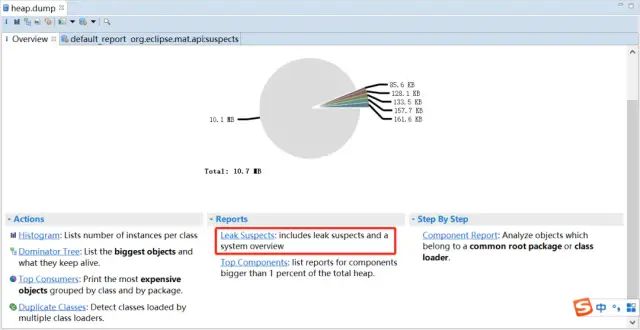 然后File->Open Heap Dump... ,然后选择刚才dump出来的文件,选择Leak Suspects