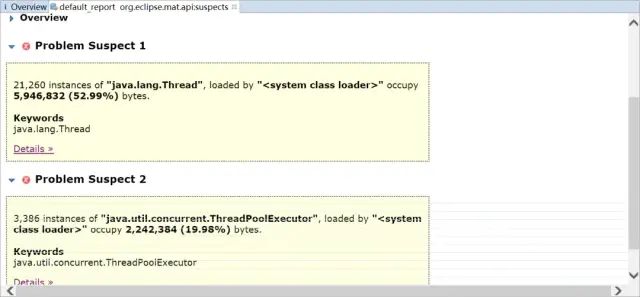 可以看到居然有21260个Thread对象,3386个ThreadPoolExecutor对象,如果你去看一下java.util.concurrent.ThreadPoolExecutor的源码,可以发现线程池为了复用线程,会不断地等待新的任务,线程也不会回收,需要调用其shutdown()方法才能让线程池执行完任务后停止。