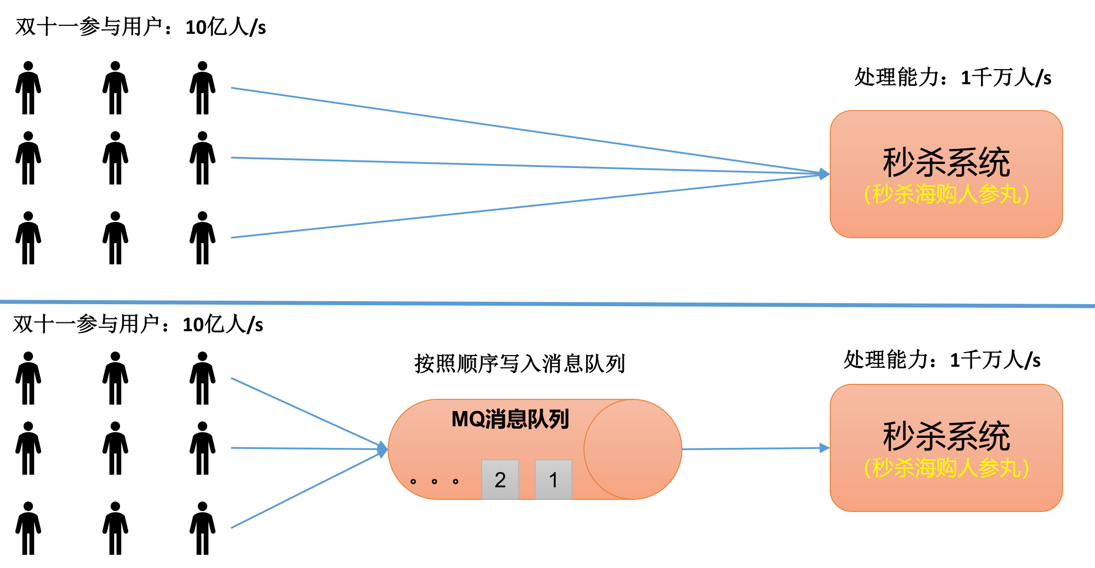 缓冲/消峰:有助于控制和优化数据流经过系统的速度,解决生产消息和消费消息的处理速度不一致的情况。