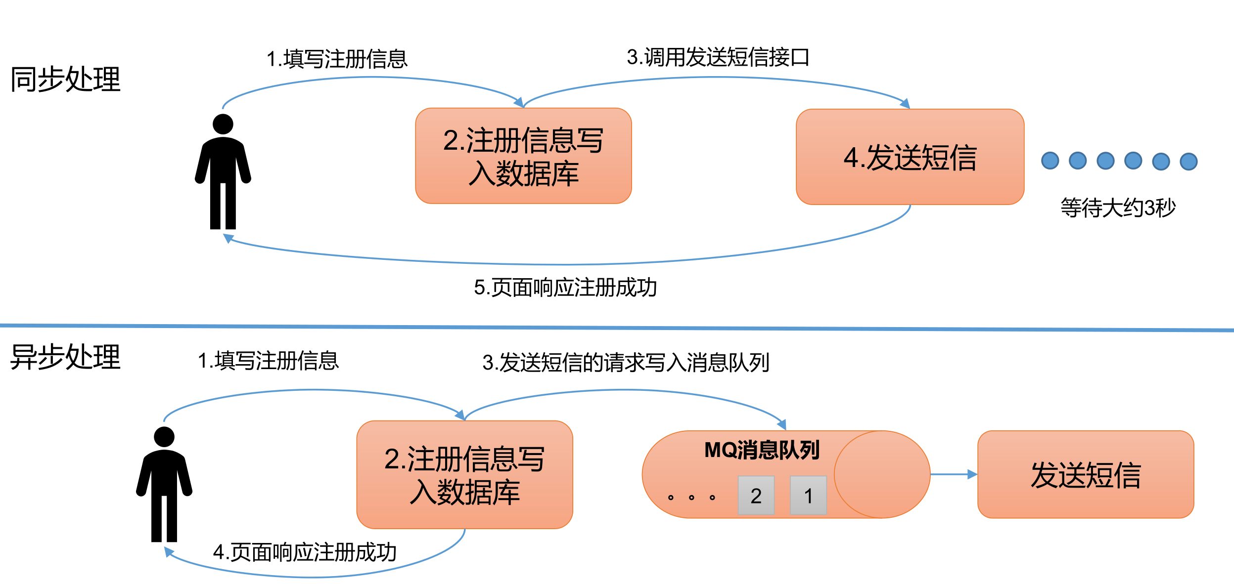 异步通信:允许用户把一个消息放入队列,但并不立即处理它,然后在需要的时候再去处理它们。