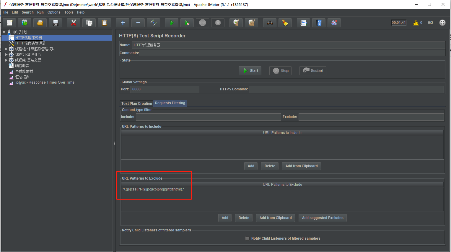 以下实例为排除模式--排除模式加这串字符:.*\.(js|css|PNG|jpg|ico|png|gif|txt|html).*