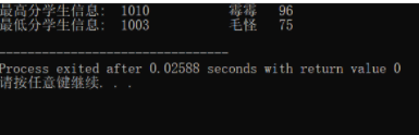 printf("最高分学生信息: %5d%15s%5d\n", stmax.num, stmax.name, stmax.score);