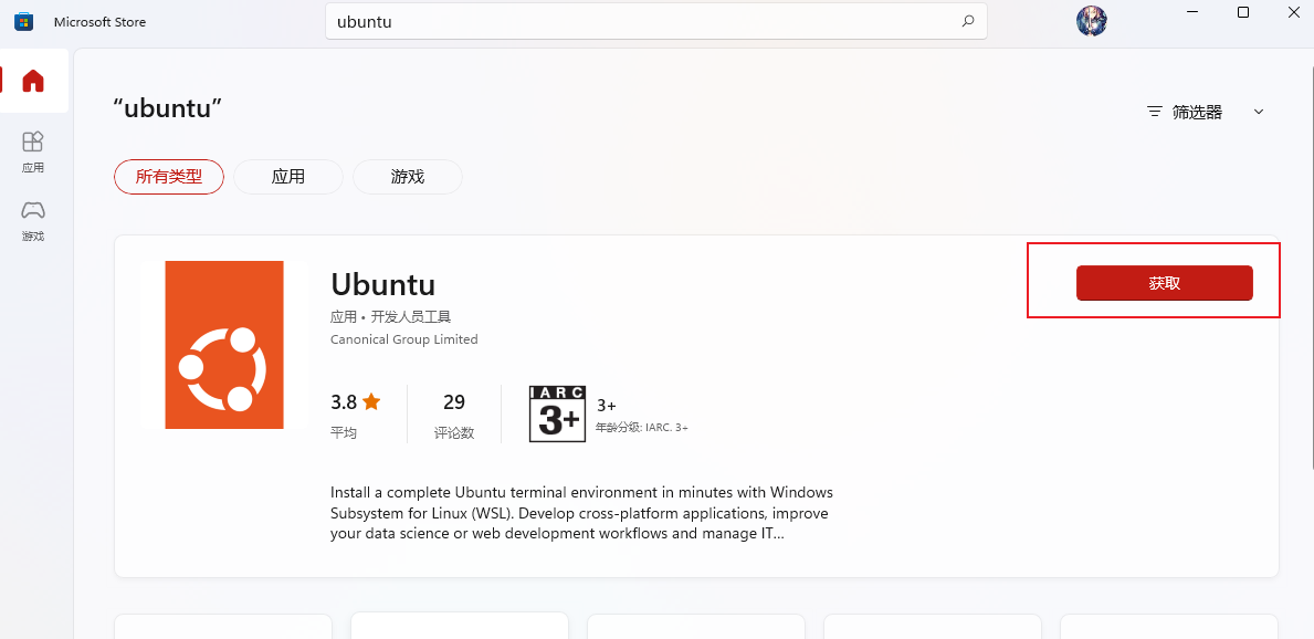 安装完成后,在开始菜单中你会看到 Ubuntu 这个新软件,打开它。