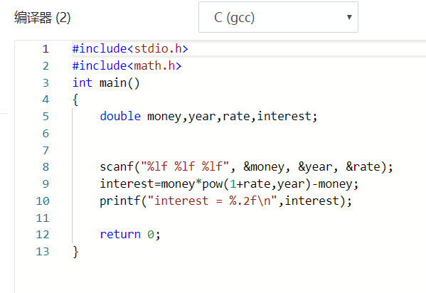 首先把题目给出的四个变量定义,再接受数据并放入,再写下计算公式即可输出。