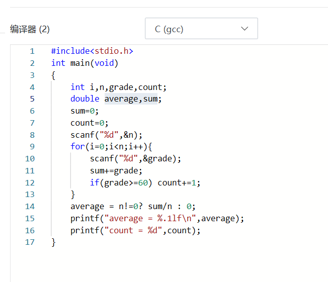 本题变量:int整形:i,n,grade,count; double形:average,sum