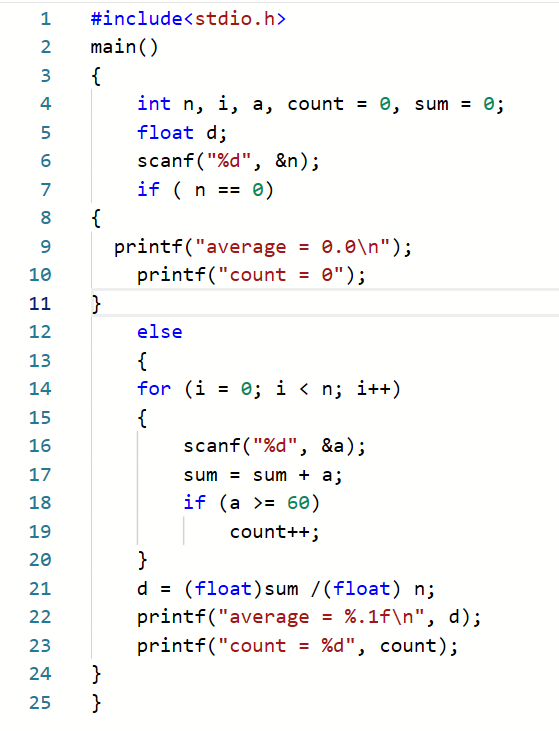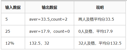 本题要求编写程序,计算学生们的平均成绩,并统计及格(成绩不低于60分)的人数。题目保证输入与输出均在整型范围内。