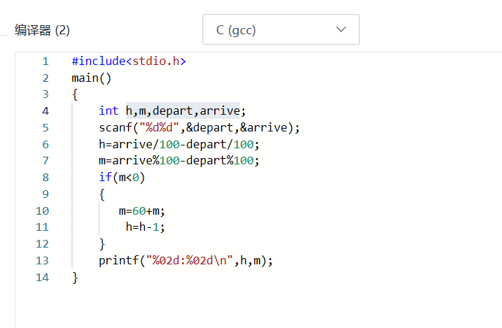 本题要求根据火车的出发时间和达到时间,编写程序计算整个旅途所用的时间。