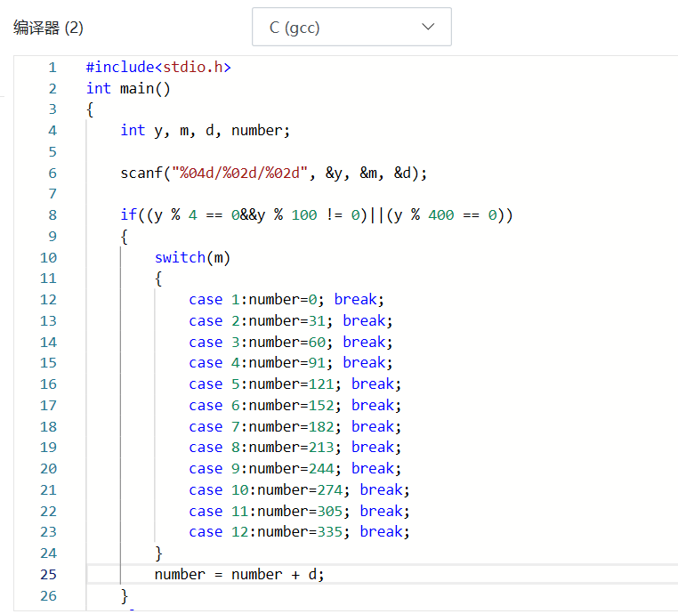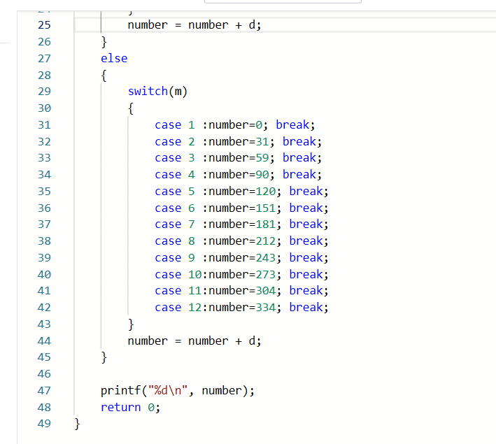 使用if,else语句,之中包括switch语句,列出每个月的天数,再以number = number + d来得出结果。