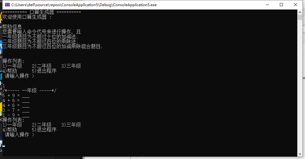 printf("========== 口算生成器 ==========\n欢迎使用口算生成器 :\n\n");