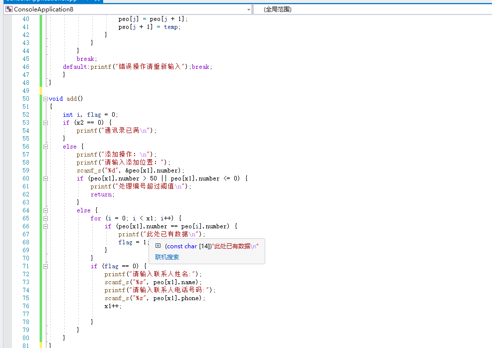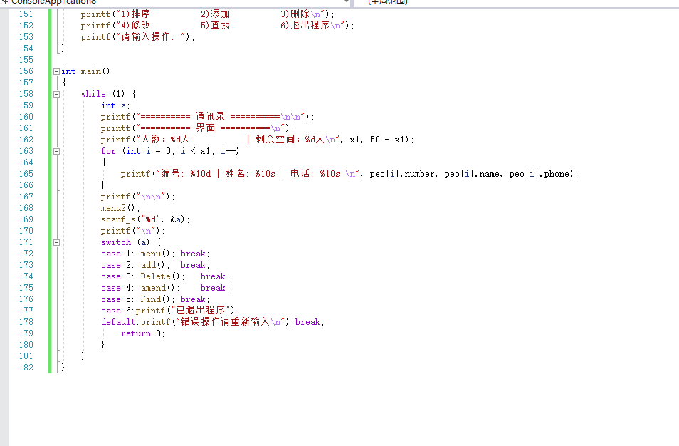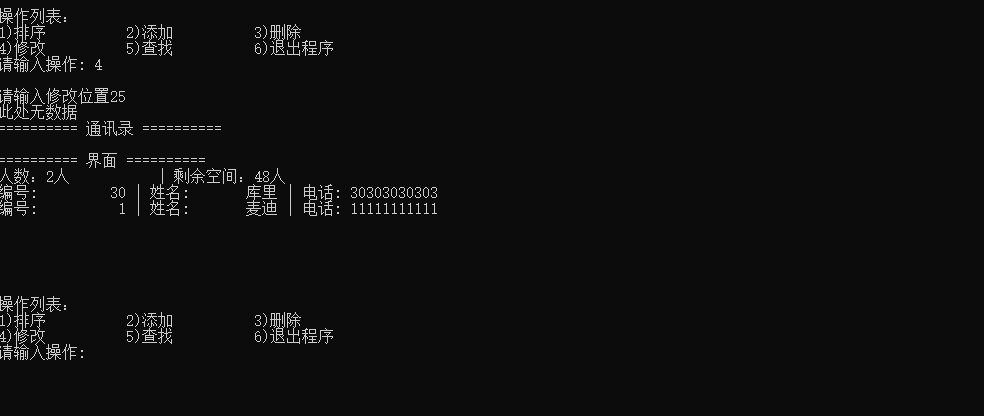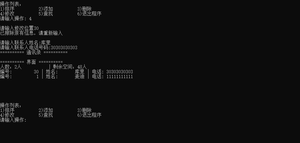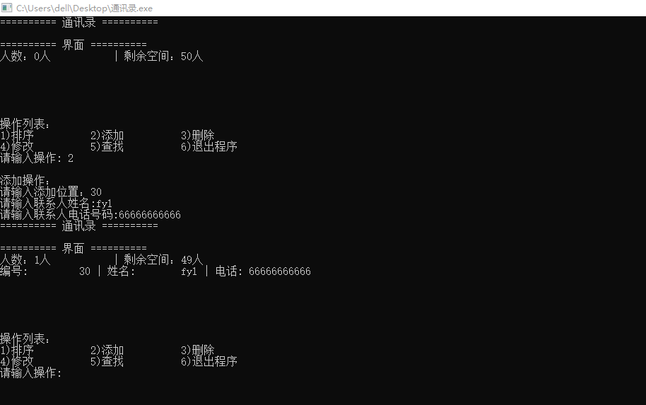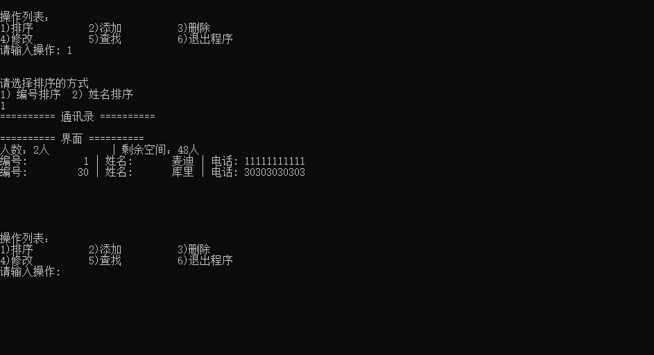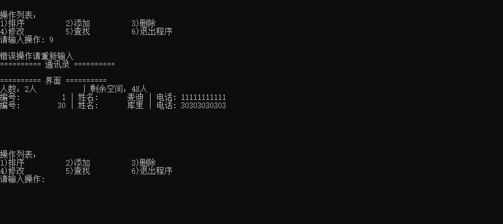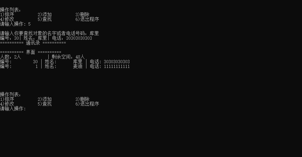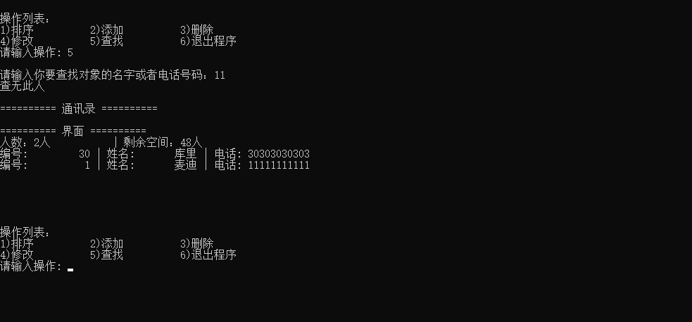| 这个作业的目标 | 使用数组,包括二维数组和字符数组,编写通讯录 |