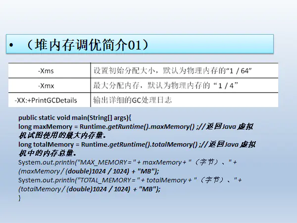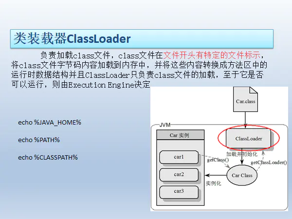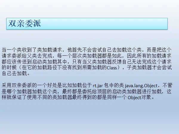 1 /** 2 * sun.misc.Launcher jdk下rt.jar下的jvm的入口应用启动类 3 * 4 * getClass();获得类类型,及反射 5 * ================================||====================================== 6 * 类装载器ClassLoader负责加载class文件,class文件在文件开头有特定的文件标示cafe babe, 7 * 将class文件字节码内容加载到内存中,并将这些内容转换成方法区中的运行时数据结构并且ClassLoader只负责class文件的加载 8 * 至于它是否可以运行,则有Execution Engine决定 9 * ================================||====================================== 10 * 类加载器总共是3+1种 11 * jvm自带三种类加载器: 12 * 1、启动类加载器(Bootstrap) c++所写,java获得就会显示null 13 * 2、扩展类加载器(Extension) Java ExtClassLoader 14 * 3、应用程序加载器(AppClassLoader)也叫系统类加载器,加载当前应用的classpath的所有类 15 * 16 * 4、用户自定义加载器 17 * Java.lang.ClassLoader的子类,用户可以定制类的加载器 18 * 19 * 20 * Bootstrap($JAVAHOME/jre/lib/rt.jar) 21 * ↑ 22 * Extension($JAVAHOME/jre/lib/ext/*.jar)可参考javax包 23 * ↑ 24 * AppClassLoader($CLASSPATH) 25 * ↑ 26 * ---------------- 27 * ↑ 28 * User-Defined ClassLoader 29 * ================================||====================================== 30 * 31 * 类装载器将.class 装载并初始化变成大的Class,表示开始按照模板装载实例 32 *================================||====================================== 33 * 双亲委派机制加载 34 * 当一个类收到了类加载请求,它首先不会尝试自己去加载这个类,而是把这个请求委派给父类去完成,每一个层次类加载器都是如此, 35 * 因此所有的加载请求都应该传到启动类加载器中,只有父类加载器反馈自己无法完成这个请求的时候(在它的加载路径下没有找到所需要的加载class) 36 * 子加载器才会尝试自己去加载 37 * 采用双亲委派的一个好处是比如加载位于rt.jar包中的类java.lang.Object,不管是哪个加载器加载这个类,最终都是委托给顶层的启动类加载器 38 * 进行加载,这样就保证了使用不同的类加载器最终得到的都是同一个Object对象 39 * 40 * 沙箱安全:防止外部代码污染java源代码 41 *eg: 42 * package java.lang; 43 * 44 * public class String { 45 * //错误: 在类 java.lang.String 中找不到 main 方法 46 * public static void main(String[] args) { 47 * System.out.println("hello 1205"); 48 * } 49 * } 50 *================================||====================================== 51 * 5、方法区 52 * 5.1 它存储了每一个类的结构信息 53 * 5.2 方法区是规范,在不同虚拟机里头实现是不一样的,最典型的就是永久代(java 7 PermGen Space) 和元空间(java 8 Metaspace)。 54 * eg: 55 * 空调 x=new 格力(); 56 * 空调 x=new 海尔(); 57 * 供各线程共享时内存区域。它存储了每一个类的结构信息。例如运行时常量池(Runtime Constant Pool) 58 *、字段和方法数据、构造函数和普通方法的字节码内容。上面讲的是规范,在不同虚拟机里头实现是不一样的。 59 * 实例变量存在堆内存中,和方法区无关 60 * ================================||====================================== 61 *6、栈 62 * 6.1 栈管运行,堆管存储 63 * 6.2 栈保存哪些东西? 64 * 8种基本类型变量+对象的引用变量+实例方法都是在函数的栈内存中分配 65 * Exception in thread "main" java.lang.StackOverflowError 栈内存溢出 是一个错误 66 *=====================================||====================================== 67 * 7、heap 68 * 8、heap----->对象的生命周期------>OOM 69 * 70 * 9、GC是什么:分代收集算法(1、次数上频繁收集Young区2、次数上较少收集Old区3、基本不动元空间) 71 * 9.1 引用计数法(对于循环引用问题不能解决,记数法消耗时间)-》进阶可达性分析 72 * 9.2、复制算法(Copying 不产生内存碎片,但是费空间 用于young区) 73 * 9.3、标志清除(Mark-Sweep 用于Old区,产生内存碎片,扫描标志,费时间、但是不需要额外空间) 74 * 9.4、标志压缩(Mark-Compact) 75 */ 76 77 public class MyObject { 78 public static void main(String[] args) { 79 Object object=new Object(); 80 System.out.println(object.getClass().getClassLoader());//null 81 //System.out.println(object.getClass().getClassLoader().getParent()); 82 //System.out.println(object.getClass().getClassLoader().getParent()); 83 84 System.out.println(); 85 System.out.println(); 86 87 MyObject myObject=new MyObject(); 88 System.out.println(myObject.getClass().getClassLoader());//sun.misc.Launcher$AppClassLoader@b4aac2 89 System.out.println(myObject.getClass().getClassLoader().getParent());//sun.misc.Launcher$ExtClassLoader@ca494b 90 System.out.println(myObject.getClass().getClassLoader().getParent().getParent());//null 91 } 92 }