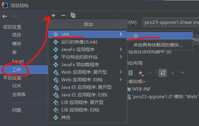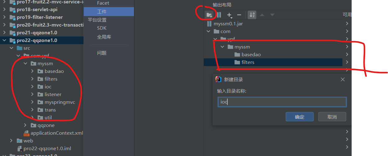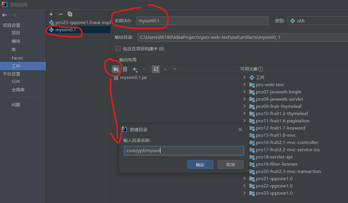 修改jar包名字,点击创建目录,根据你的需求建立目录结构