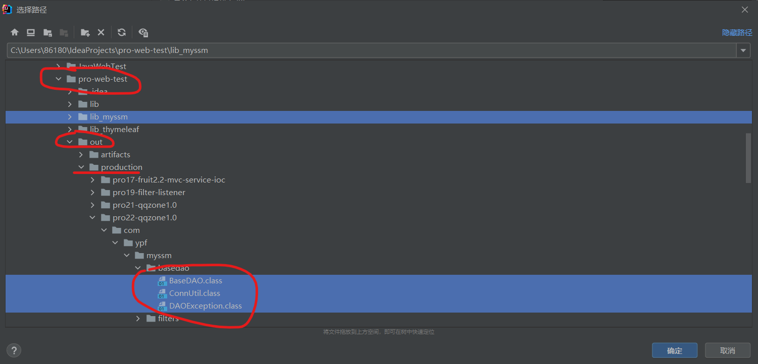 选择你需要打包的项目的out目录下,对应class文件。全部选择完后,点击应用和确定。