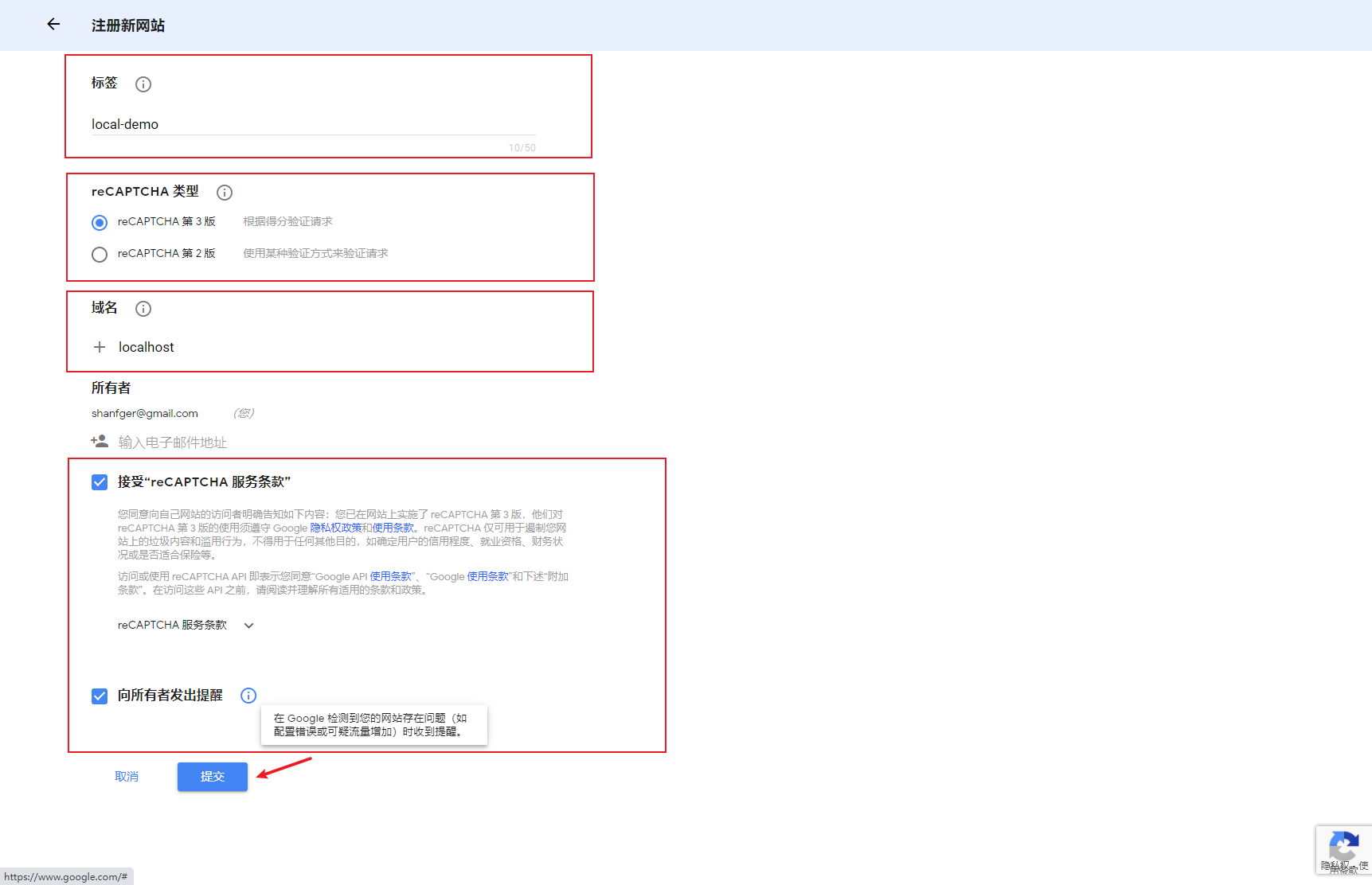 Domain 指使用的 Google reCAPTCHA 服务的域名,可以是www.recaptcha.net 或者 www.google.com,使用前者可以在国内正常使用,不受GFW影响。
