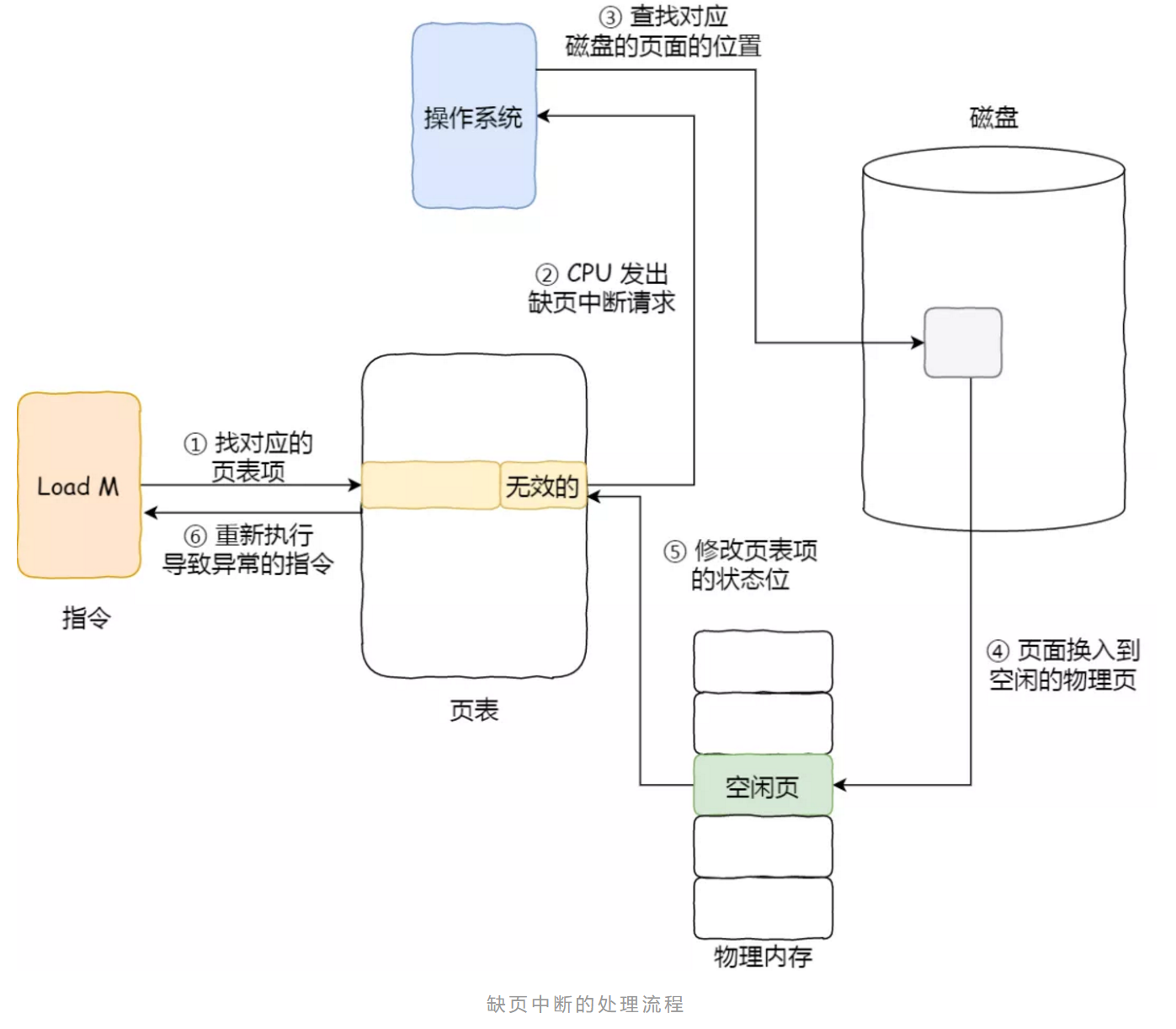 最后,CPU 重新执行导致缺页异常的指令。