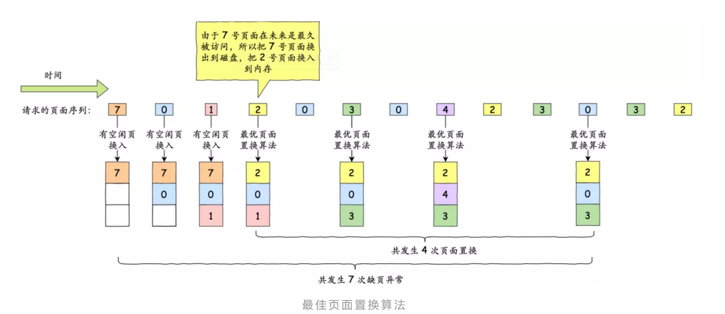 根据未来即将使用的页面中淘汰已经使用的页面中最久不会被访问的页面。