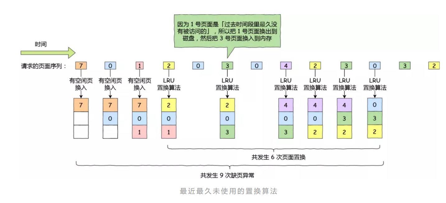 已经在使用的页面中最长时间没有被访问的先被置换掉。