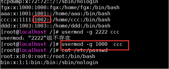 6. usermod -u 1111 ccc 将用户ccc的uid改为1111