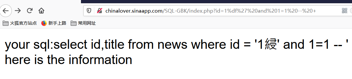 URL:http://chinalover.sinaapp.com/SQL-GBK/index.php?id=1