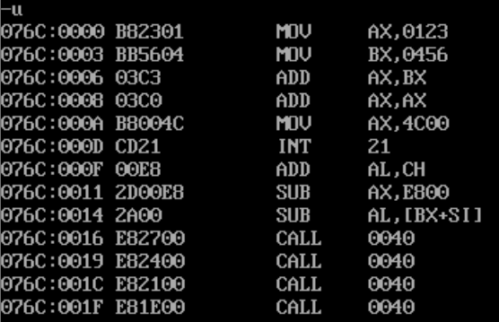 (1)使用U命令查看载入的指令: