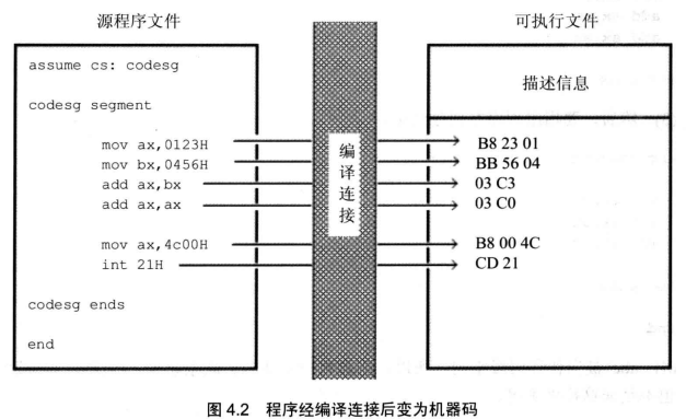 例如程序4.1中,assume cs:codesg将用作代码段的codesg和CPU中的段寄存器CS联系了起来。