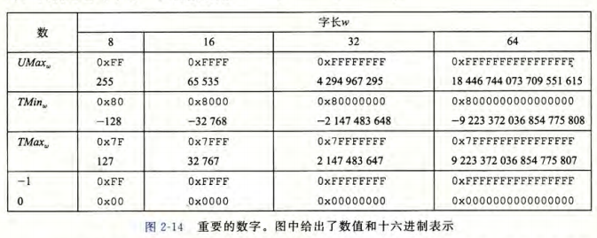 TMinw=−2w−1;最大值[01…1](清除具有负权的位,并设置其他位),其整数值为