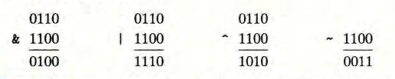 C语言支持按位布尔运算,这些运算适用于任何“整型”的数据类型上。下图就是对char数据类型表达式求值的例子: