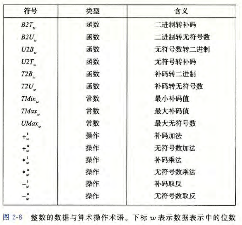假设一个整数数据类型有w位,可以写成向量的形式: