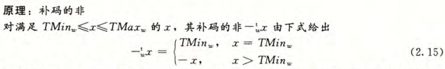 其中最高有效位xw-1称为符号位,权重为-2w-1。符号位设置为1时,表示为负,设置为0时,值为非负。那么就有: