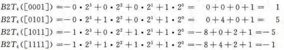 B 2 S w ( x ⃗ ) = ( − 1 ) x w − 1 ⋅ ( ∑ i = 0 w − 2 x i 2 i ) B2S_w(\vec x)=(-1)^{x_{w-1}} \cdot (\sum_{i=0}^{w-2} x_i2^i) B2Sw(x)=(−1)xw−1⋅(∑i=0w−2xi2i)