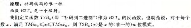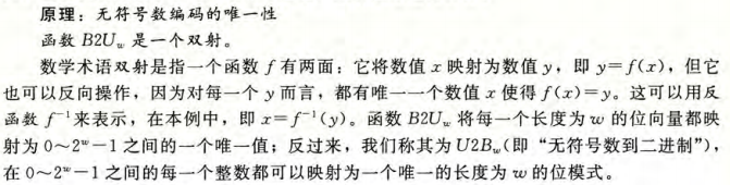 无符号数的二进制表示有一个很重要的属性,就是每个介于0~2w-1之间的数都有唯一一个w位的值编码。
