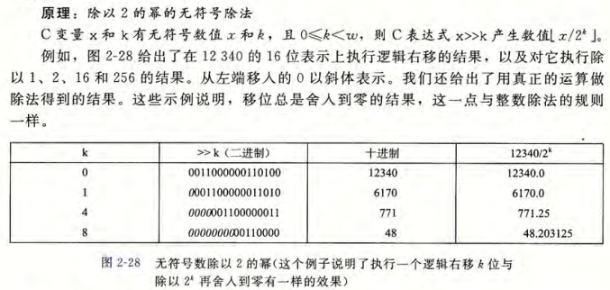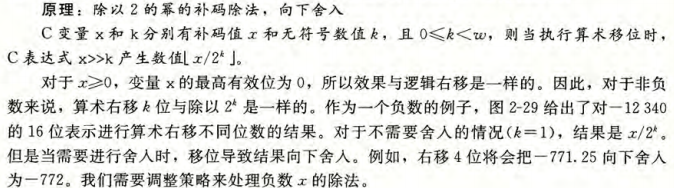 C语言并没有明确定义对于有符号数应该使用哪种类型的右移。所以这就可能面临可移植性问题。实际上,对于大部分的编译器/机器组合都对有符号数使用算术右移。另一方面,对于无符号数,右移必须是逻辑右移。
