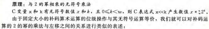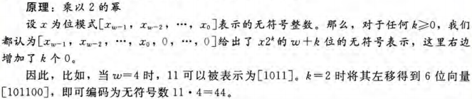 移位指令会考虑位移量的低log2w位,即实际位移量是通过计算k mod w取余得到的。
