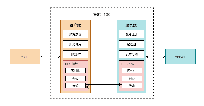 rpc_server为 rest_rpc服务端对象,负责注册服务、发布订阅、线程池管理等服务端基本功能,位于rest_rpc::rpc_service命名空间。