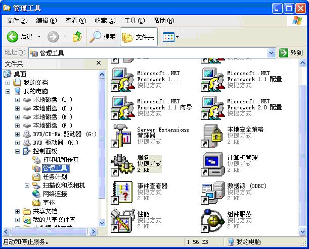 我们打开Windows资源管理器,在左边的树状列表中选中“桌面-控制面板-管理工具”。