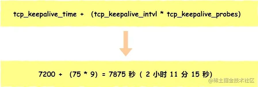 也就是说在 Linux 系统中,最少需要经过 2 小时 11 分 15 秒才可以发现一个「死亡」连接。