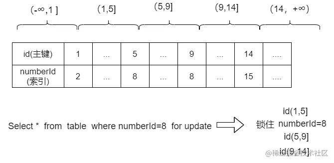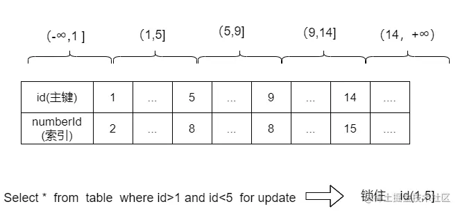 临键锁(next-key),可以防止幻读。根据索引,划分为一个个左开右闭的区间。当进行范围查询的时候,若命中索引且能够检索到数据,则锁住记录所在的区间和它的下一个区间,