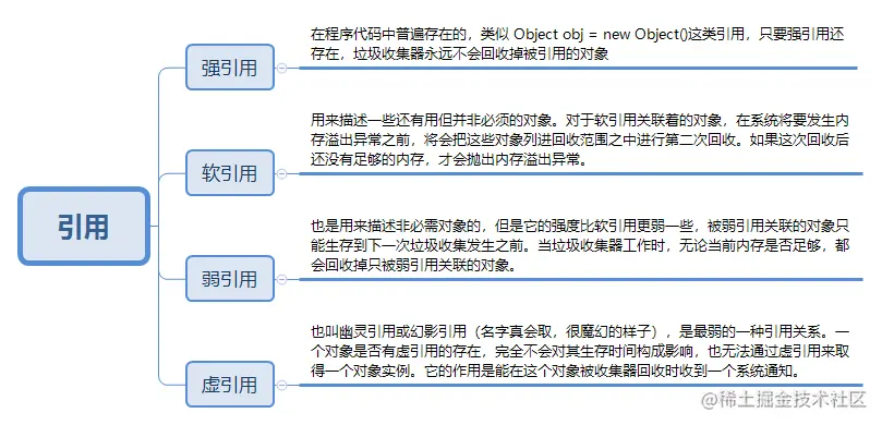 - -XX:PrintReferenceFC:用来跟踪系统内的(softReference)软引用,(weadReference)弱引用,(phantomReference)虚引用,显示引用过程