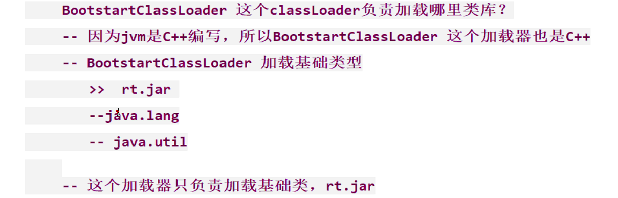 2.它用来加载Java的核心库(JAVA_HOME/jre/lib/rt.jar、resources.jar或sun.boot.class.path路径下的内容),用于提供JVM自身需要的类