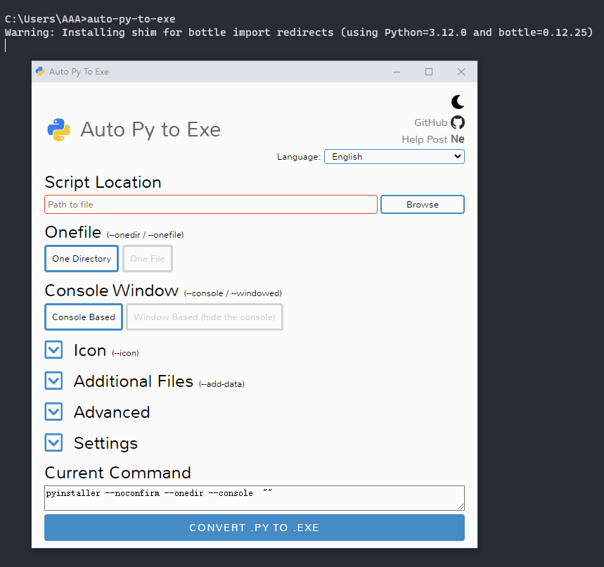 cmd命令框输入:auto-py-to-exe